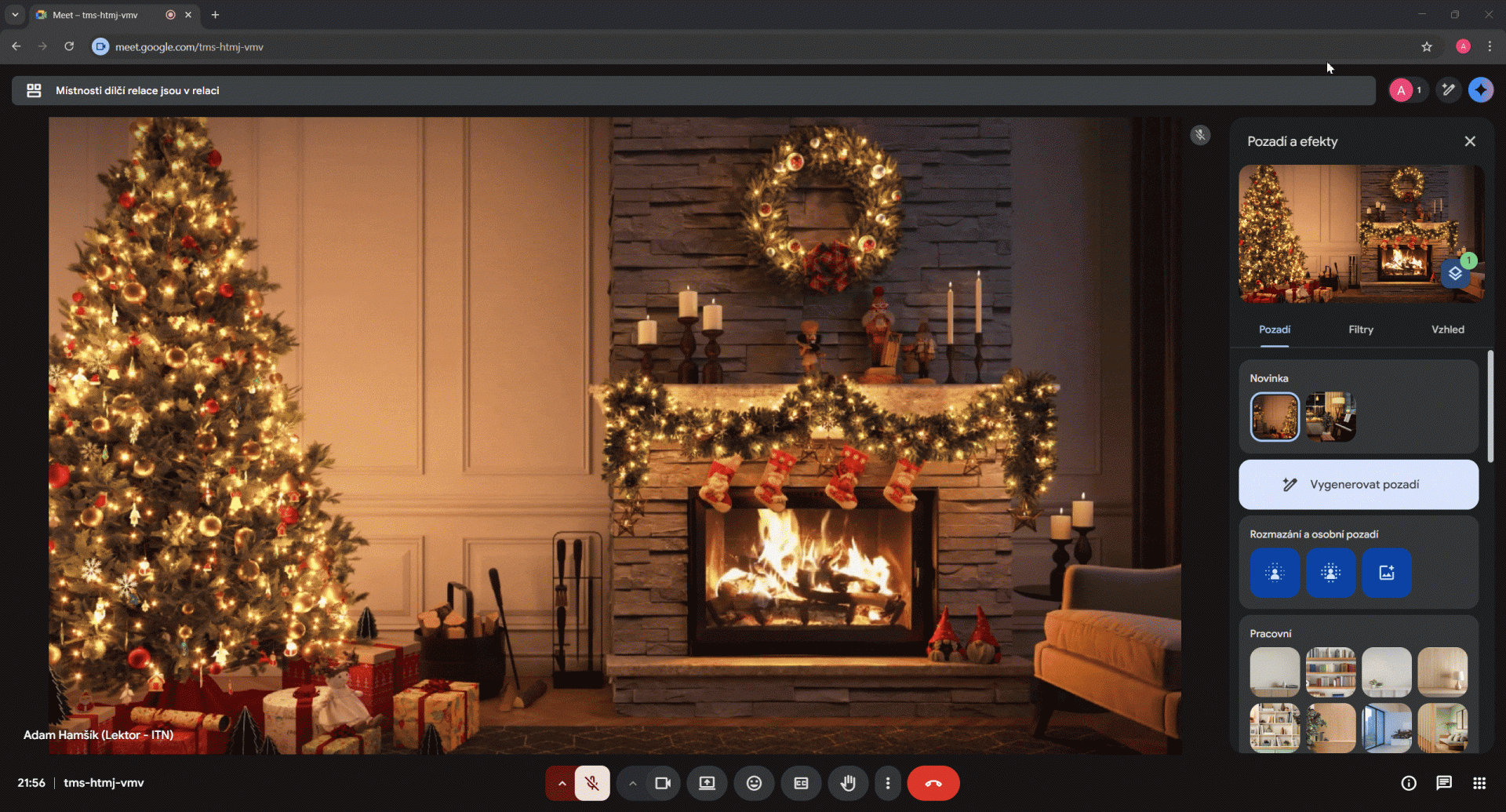 Pozor, pokud jsme již připojení v Meetu, je potřeba se nejprve odpojit a znovu připojit, aby byla změna viditelná.