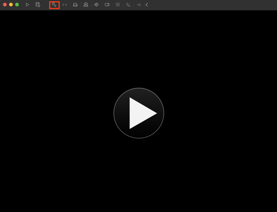 Pro změnu parametrů virtuální počítač vypneme a v menu VMware klikneme na ikonu klíče: