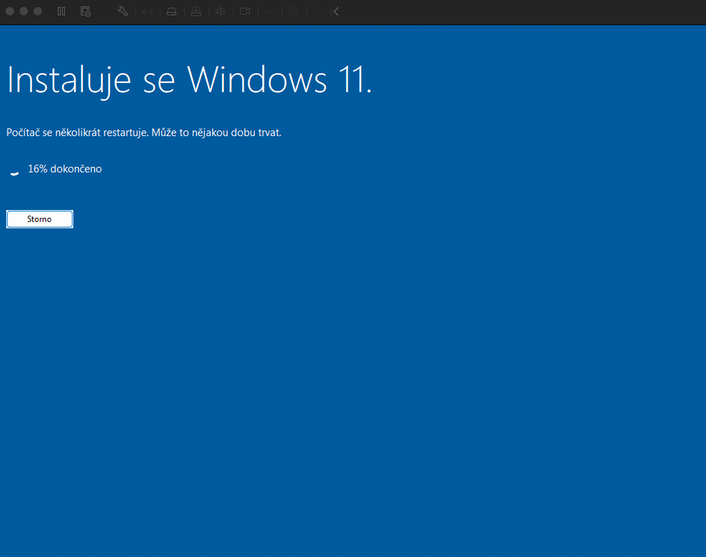 Poté už jen počkáme několik minut než se nám operační systém nainstaluje. Virtuální počítač se během toho může několikrát sám restartovat: